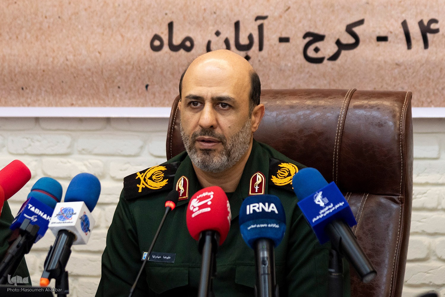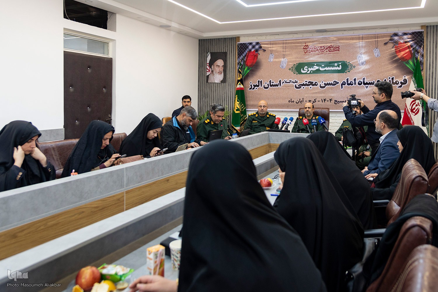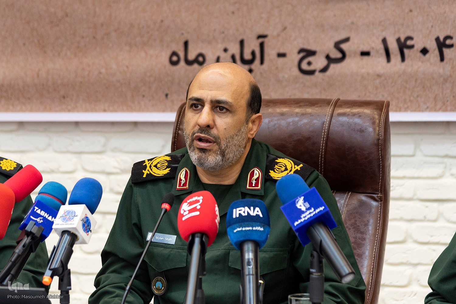 نشست خبری سردار علیرضا حیدرنیا، فرمانده سپاه استان البرز، امروز، ۲۸ آبانماه به مناسبت هفته بسیج در سپاه کرج برگزار شد.